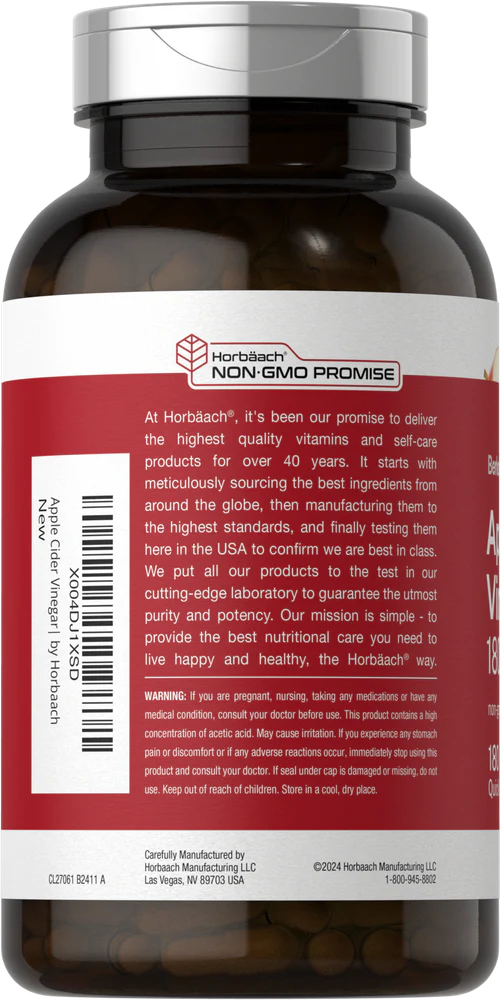 Apple Cider Vinegar 1800mg per serving | 180 Capsules