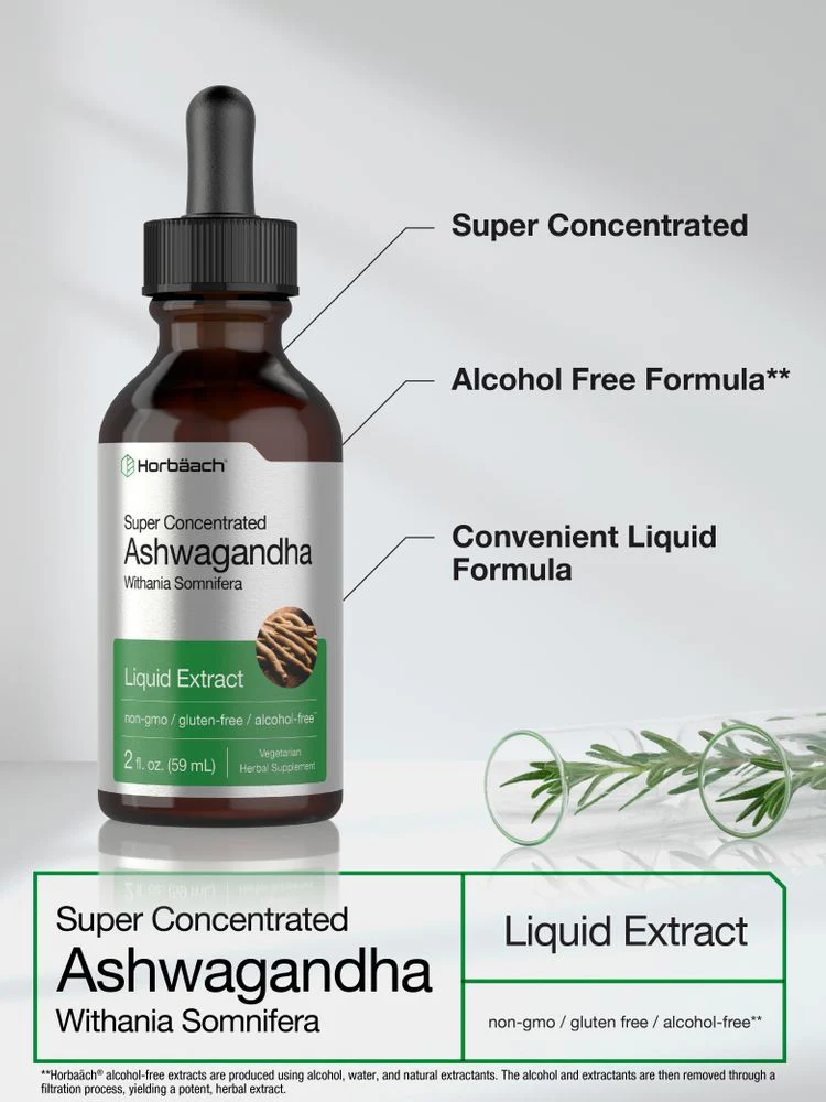Horbaach's Ashwagandha supplement delivers herbal support, straight from the Himalayan Mountains of India. Each tincture carries super concentrated drops from the leaves and roots of Withania Somnifera extract. Don't settle for anything less than superb... Add our Vegetarian, Gluten Free formula to your collection of herbal supplements and vitamins now! Horbäach alcohol-free extracts are produced using alcohol, water, and natural extractants. The alcohol and extractants are then removed through a filtration process, yielding a potent, herbal extract.