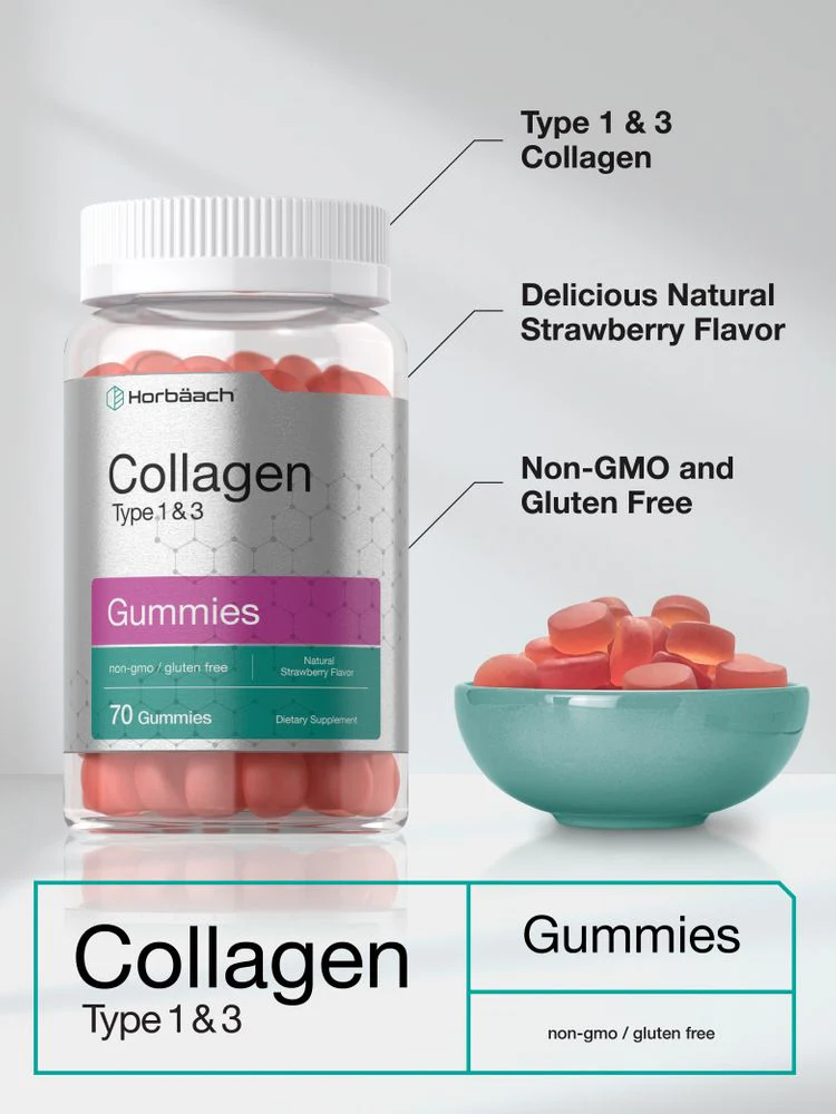 Horbaach Collagen Gummies are the satisfying way to feed your inner beauty. Designed with the finest source of Hydrolyzed Collagen, our gluten-free and non-GMO gummy formula provides 60 mg of Collagen Type 1 and 3 per serving, helping replenish your body's supply of this valuable protein. Get a blast of delicious strawberry flavor with each chew, made for men and women!