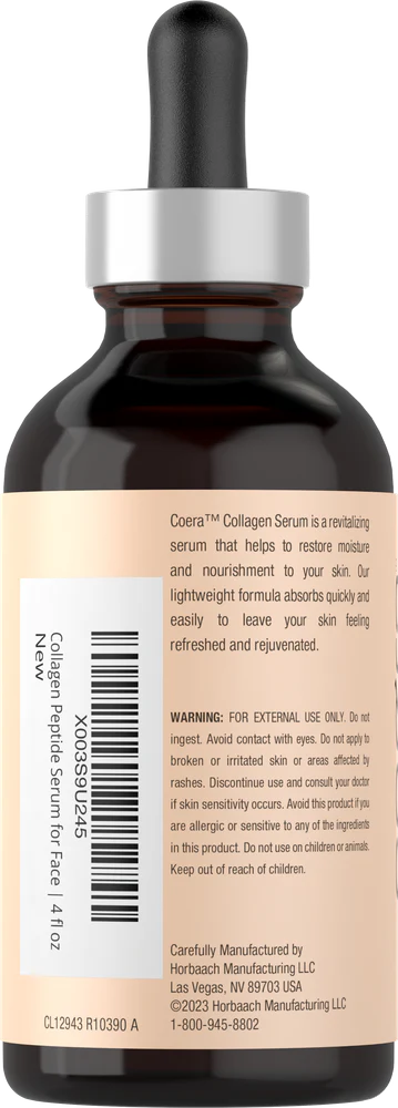 Moisturize and nourish skin with Coera Collagen Peptide Serum! Typically, Collagen Peptides can be found in supplement forms like capsules, pills, bulk powder, drink packets, liquid drops, tablets, and gummies. However, it has become a popular ingredient for both men and women in topical skin care products like creams, moisturizers, lotions, face masks, sprays, serums, facial cleansers, and oils.