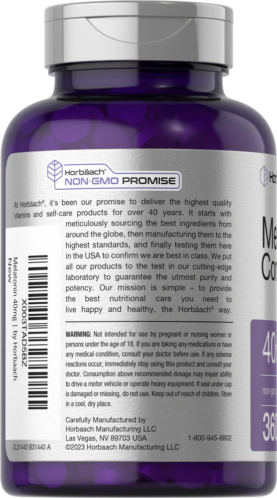 Horbaach's Melatonin Complex is the perfect addition to your nighttime routine! Fast dissolve tablets feature 40 mg of a Melatonin Complex which includes 12 mg of Melatonin plus Beet Root, Chamomile Flower and Ashwagandha. Our vegetarian formula is gluten free and non-GMO, made with no artificial flavor or preservatives, making it a great choice for adults everywhere!