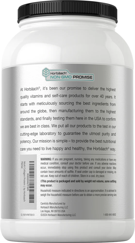 Horbaach has used years of industry experience to craft a super Multi Collagen Protein Powder. Our premium formula contains a deep profile of key nutrients with 10 types of Collagen Peptides sourced from real whole foods. This includes Fish, Chicken, Bovine and Eggshell Membrane Collagen. Our complex Multi-Collagen powder is unflavored making it perfect for any coffee, drink, shake or baking recipe. Also, itās Non-GMO, Gluten Free, Dairy Free and Soy Free. Our ultra powder has officially raised the bar for Collagen Innovation and is a great choice for both men and women.