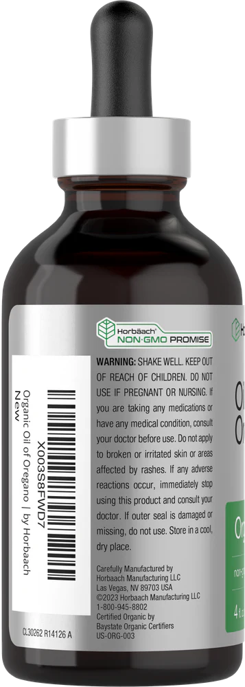 Experience Horbaach Organic Oil of Oregano! Our advanced formula delivers 34 mg of Organic Oil of Oregano per serving in convenient liquid drops for premium support. It's derived from the leaf of the Origanum minutiflorum plant and is designed to suit a vegetarian lifestyle. Horbaach Organic Oil of Oregano is non-GMO, and made without artificial color, flavor or sweetener, a top-quality supplement for adults seeking additional support from this powerful herb.